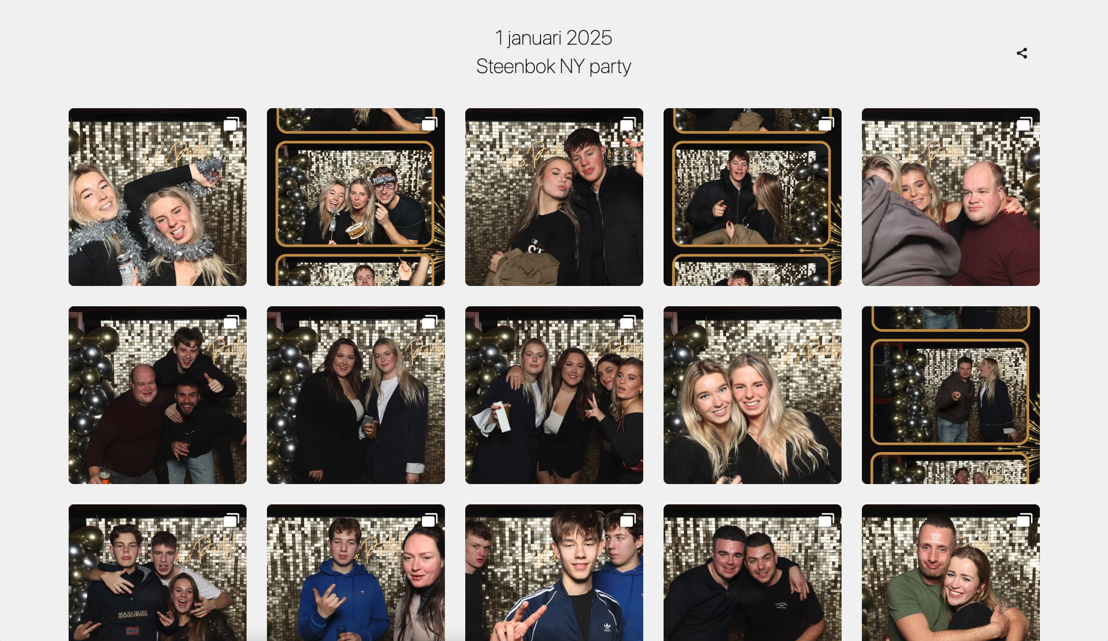 Na afloop van het event ontvang je een online fotoalbum waarin alle foto’s, GIF’s en Boomerangs overzichtelijk terug te vinden zijn.